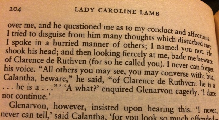 I could write many things about books relating to Byron/using him in a fictionalised way/referencing him for some reason or another, but I’ve already posted on here about Caroline Lamb’s Glenarvon (and its similarity to Twilight) and this has become quite long already. Instead, here’s a video to enjoy, the amazingly weird ‘Dread Poets’ Society’, aka Benjamin Zephaniah accidentally meets the Romantic poets on a train (I would’ve also linked to the Horrible Histories Byron parody about him not being a vampire just a pretentious poet, but sadly I can’t find it on YouTube).